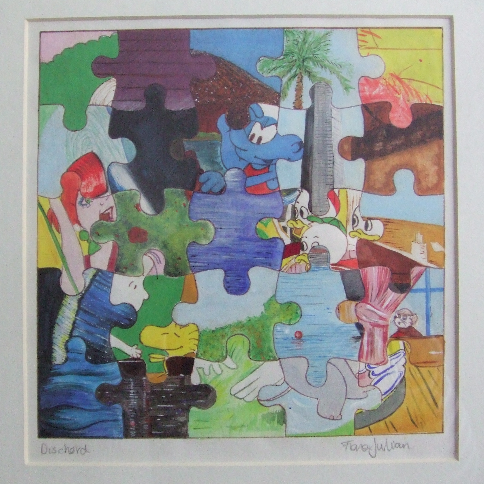 I have however dug out a piece of artwork from my school days. This is called Dischord, but is the very picture of the concept content dilemma. Pieces may fit together, but what is the picture? And more importantly what does it mean?